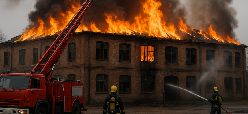 В городе Молодечно произошло возгорание в здании ремонтно-инструментального цеха на улице Великий Гостинец. По информации МЧС, сообщение о пожаре поступило утром 8 апреля 2026 года; на момент прибытия подразделений огонь уже охватил кровлю двухэтажного здания площадью около 600 кв. м. Из официального сообщения следует, что пострадавших нет, причины происшествия устанавливаются.