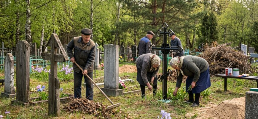 Работы включают уборку мусора, листвы и веток. На каждом кладбище оборудованы специальные места для сбора отходов. Солдатенко отметил, что объем работы значительный, и сельсовет помогает коммунальным службам. Власти стремятся поддерживать порядок даже на отдаленных участках. В прошлом году на двух кладбищах отремонтировали ограждения, на двух других установили новые. Основной задачей называют сохранение этих мест для людей, которые продолжают приезжать.